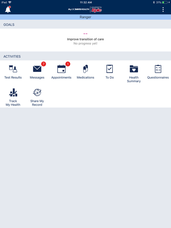 The MyUCDavisHealth app also allows you to integrate self-tracking programs like HealthKit into your medical record. You can upload health and fitness data such as activity level, nutrition, sleep patterns and more.