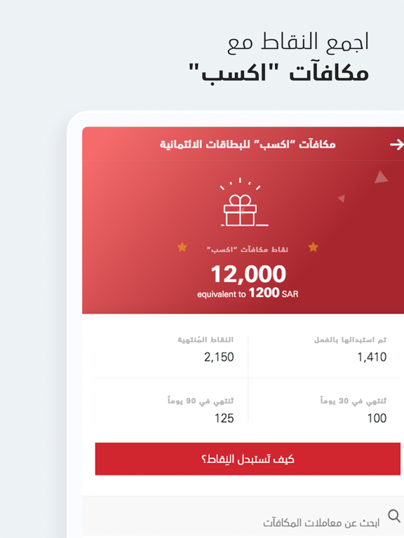 • لوحة البيانات الرئيسية، حيث يمكنك الوصول إلى بياناتك المالية وعرض أموالك النقدية والديون المستحقة بالإضافة إلى إشعارات الفئات المختلفة وأحدث عروض ساب المصممة خصيصاً لتلبية احتياجاتك.