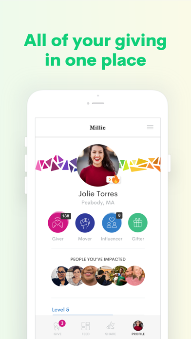 Join a cause-oriented group of people passionate about doing good, and follow app-wide giving activity through real-time feed.