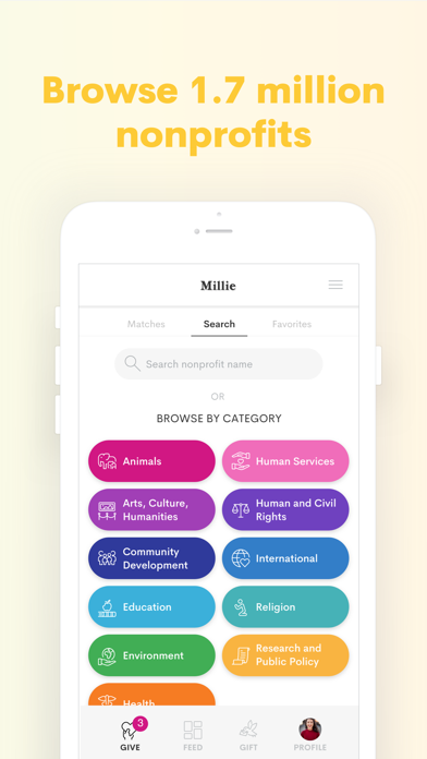 Discover and donate to impactful nonprofits with your company. Millie’s social impact platform allows you to give back with your colleagues and build community across time zones or water coolers. With Millie, charitable giving is simple and impactful. Browse over 1.7 million nonprofits, giving you the chance to easily back the causes you care about--with the opportunity to get your donation matched by your company.