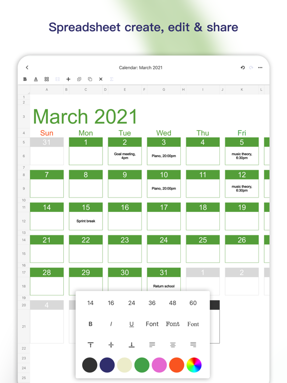 This is a spreadsheet app can let you create sheets and edit sheets.