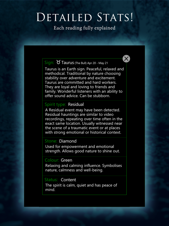 This app contains graphics, audio and haunting effects that may scare children or those of a nervous disposition. Please do not download if you are likely to be scared or offended by an app of this nature. We kindly request that you use it in the manner for which it was created; for use in a light-hearted, entertaining way and not to be taken too seriously.
