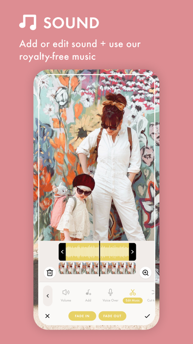 • Audio + music control, including custom royalty-free music