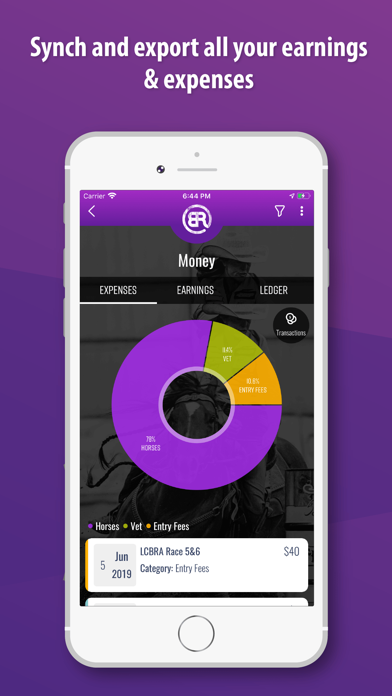 We know it's a lot to have all those feed, entries, vet, fuel, and maintenance costs floating around in your head. Let us take on some of the stress of the sport by tracking and categorizing all those numbers for you.