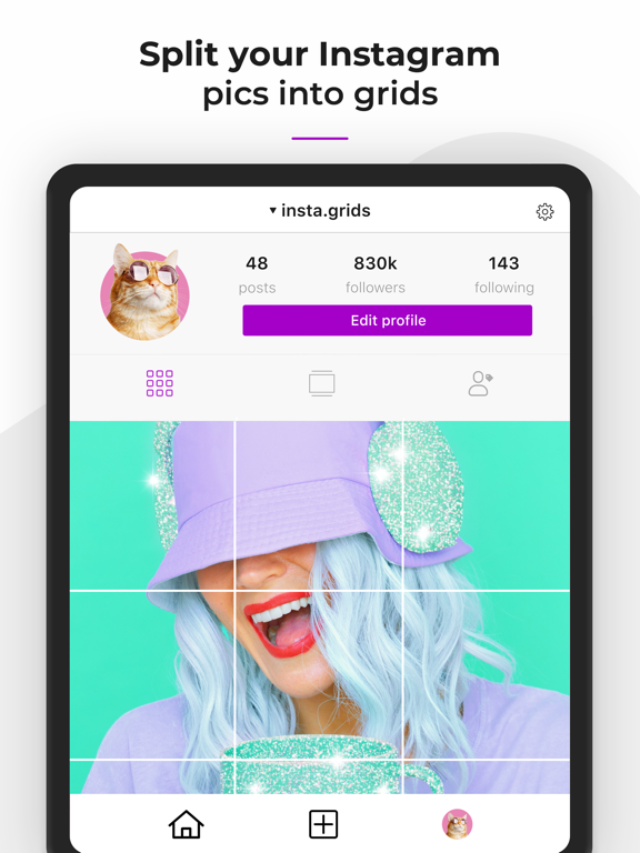 Due to InstaGrids you can easily divide your favourite photo, picture, portrait or an unforgettable landscape into a few small squares and post them directly from your device, it will form a masterpiece in your feed.