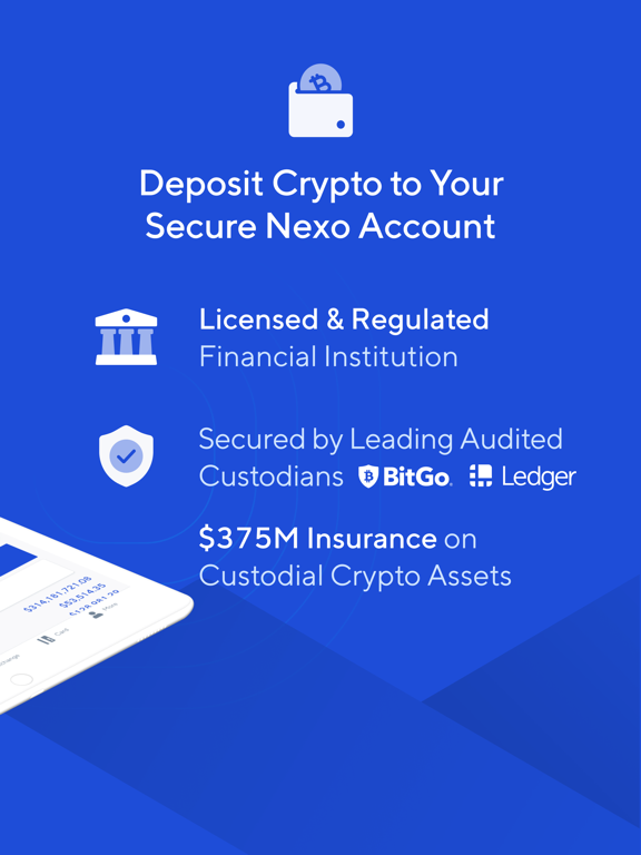 • Your Nexo account is secured through BitGo, the leader in crypto custodianship, and benefits from top-tier insurance.