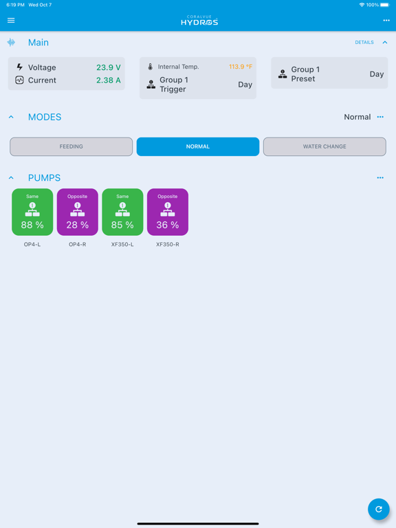 Use the CoralVue HYDROS App to control and monitor HYDROS aquarium devices from your smartphone or tablet. The user-friendly interface allows you to easily monitor your aquarium’s temperature, ORP, pH, alkalinity levels, and more. With just one tap, you can control your ATO, lights, heaters, pumps, skimmer, RODI units, etc.