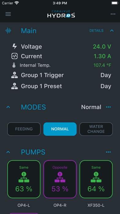 • Ability to manage multiple HYDROS devices and aquariums from one single screen