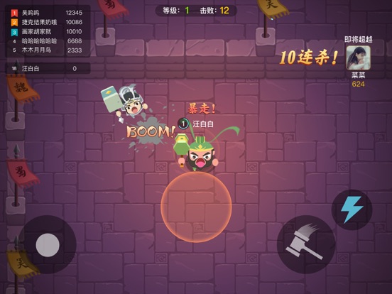 这是一款超好玩,超爽快,超有挑战性的休闲解压游戏! 拿起你手里的锤子,化身成三国英雄,锤爆敌人,一锤一个,成为全场最强就是你的目标。 在这场刺激感十足的战斗中,忘掉顾虑,甩掉负担,尽情锤起来吧! 游戏玩法: 1.操作摇杆,控制英雄风骚走位。 2.挥动你的锤子,吃豆豆,锤地鼠,干掉其他玩家,升级进化获得更大的锤子。 3.暴走技能加Buff,狂暴疾走,一锤一大片。 游戏特色: 【爽快击杀】 一锤到底,锤锤到肉,炫酷无比的特效,爽快的打击感,随时随地让敌人灰飞烟灭。 【策略游击】 一场彻彻底底的心理战:啥都不怕,正面刚?还是风骚走位,猥琐发育? 只有你想不到的套路,没有你玩不出的花样。 【丰富英雄】 多达30个精致的三国人物,在游戏中一步步成长,进化成更加强大的英雄吧! 【升级养成】 在游戏中获取金币,永久升级角色属性,开局就是最闪亮的星~