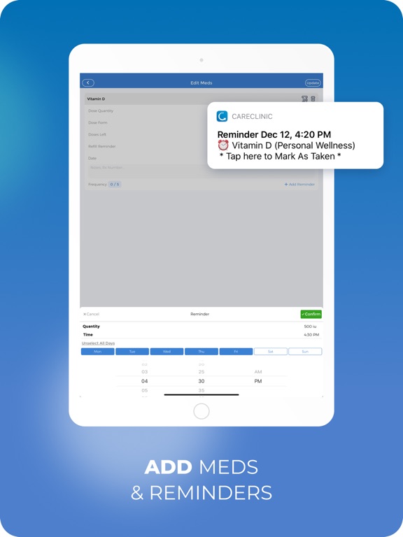 - Set pill reminders, appointments, refill reminders, vitamin reminders or supplement trackers