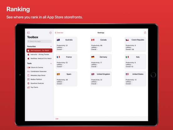Widgets: Add Toolbox widgets to view category rankings, switch storefronts and more all from your Home Screen.