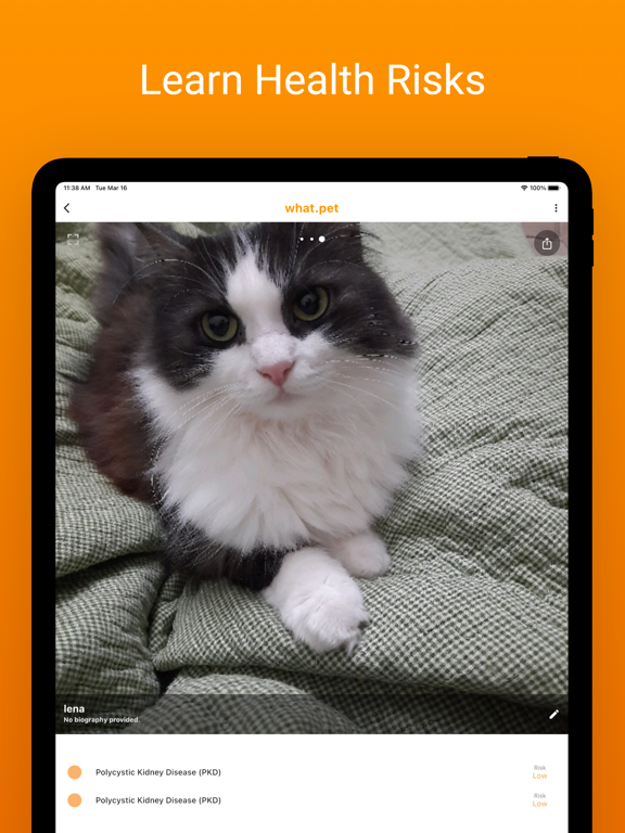 >>>What.Pet is the only dog and cat app with all of these features: virtual DNA, customized genetic health risks, smart document repository, AI-matched neighbor & daily quiz games!