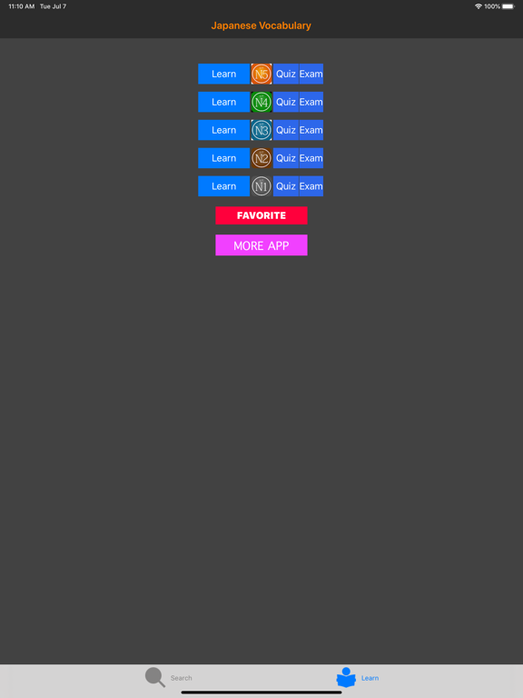 -N5,N4,N3,N2,N1全てのレベルに応じる語彙が提供されます
