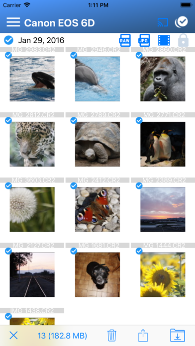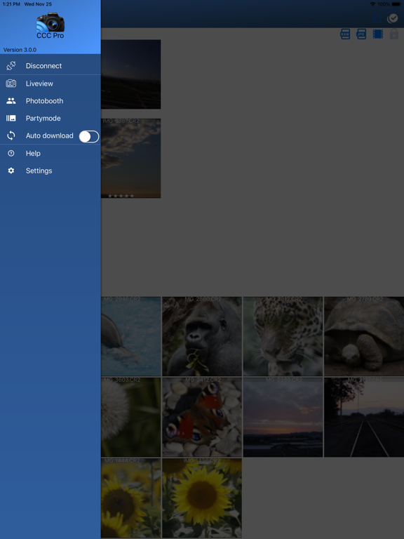 - Change settings of the camera (shutter speed, aperture, exposure compensation, iso, whitebalance, picture style, drivemode, metering, image format)