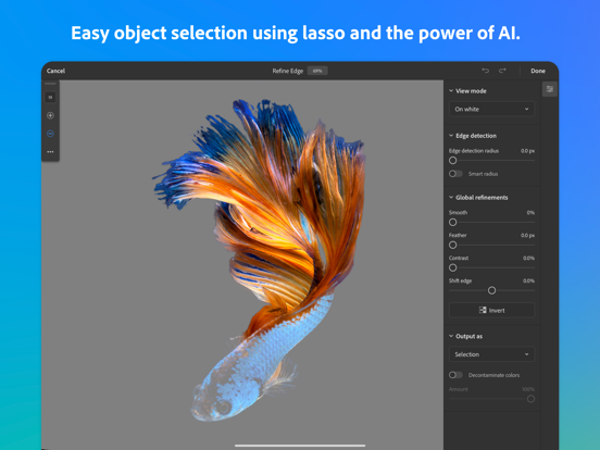 Photoshop on the iPad delivers core tools designed for Apple Pencil and touch. Get inspired and learn tips and tricks in our new inspiration gallery. Share and showcase your projects with the creative community using livestreaming. We’re releasing new product features every month, so check out the “What’s new” page in the app to see what’s coming next, suggest features, and help us build the Photoshop experience you want.