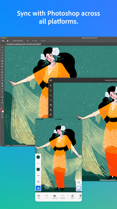 Adobe Fresco reimagines essential tools for illustrators, including modernized selection and masking, and a flexible UI so you can draw faster and without distractions. Premium features add Photoshop integration with automatic cloud syncing. Brushes and projects follow you across devices, so you can work wherever inspiration strikes.