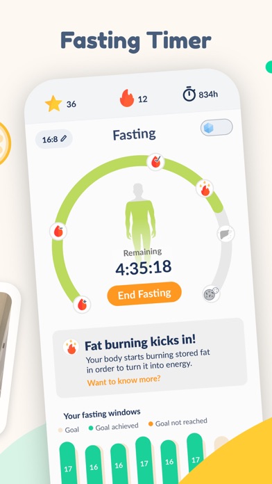 • Body Status – Identifies and tracks key stages in your fasting journey