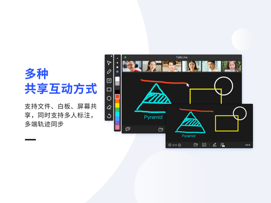 TalkLine iOS App 为移动用户提供的高清、稳定视频会议服务,可与各类型终端无缝对接。每个注册用户都将自动获得免费时长,无论是在办公室,还是出差在外,都可随时随地轻松发起、加入会议。