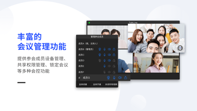 提供参会成员管理、设备管理、共享权限管理、锁定会议等多种会控功能,让会议更加安全有序。