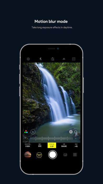 Apply photo filters in realtime. Portrait, Film, Cinematic, BW, Landscape mode included.