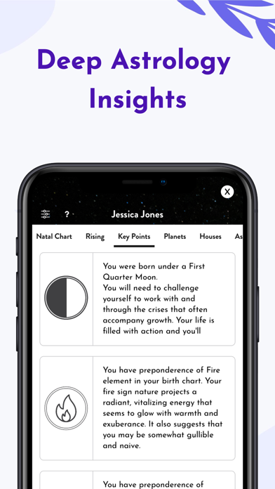 - You can also add your friends' and family members’ birth details and start viewing their natal charts, solar returns, and much more.