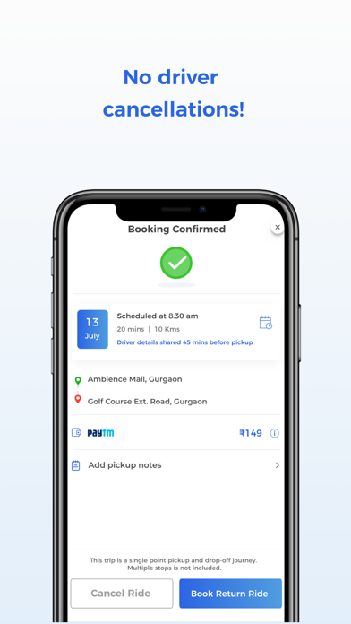 NO SURGE PRICING: No variability in fares! We operate on a fixed tiered pricing model starting at flat ₹99.