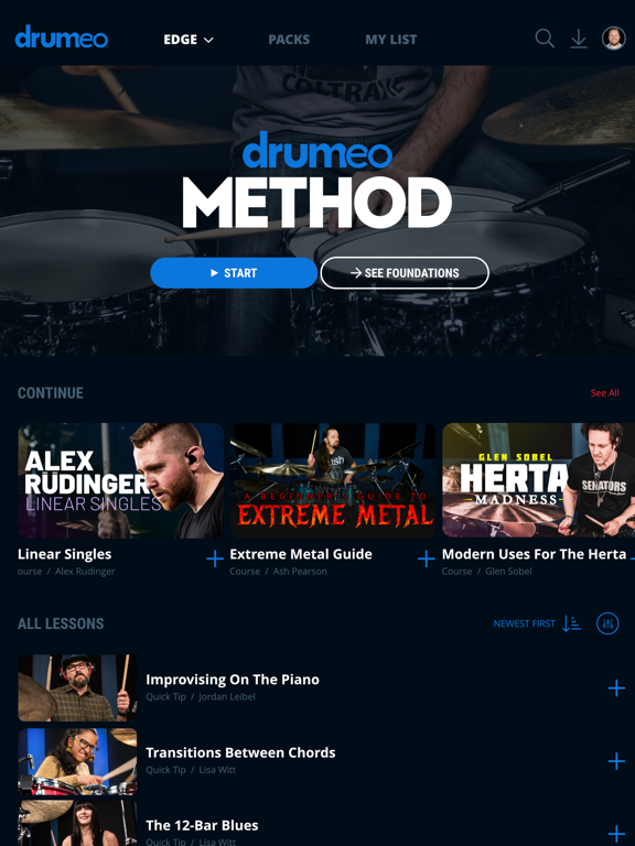 Drumeo Edge is an award-winning drum lessons platform with step-by-step courses, popular song breakdowns, entertaining shows, and more. And with the mobile app, you’ll be able to download videos for on-the-go access.