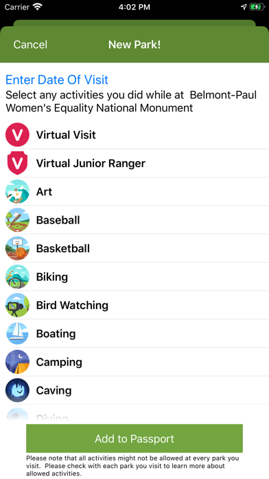 Digital Passport - to collect badges for completing outdoor activities and virtual visits to parks, including custom badges for the 61 national parks