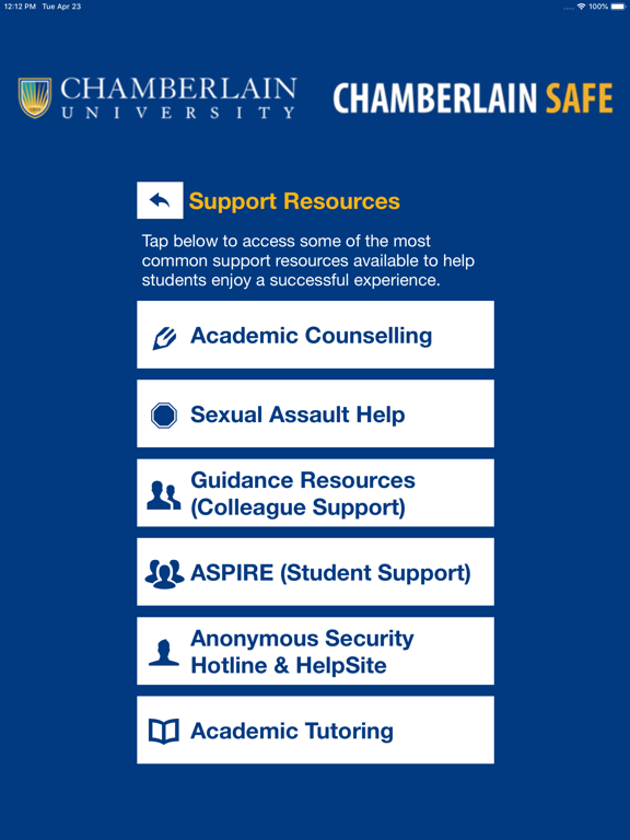 - Support Resources: Access support resources in one convenient app to enjoy a successful experience at Chamberlain University.