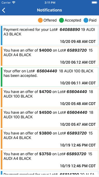 Receive push notifications right to your iPhone or iPad instantly whenever a Buyer makes an offer. You can view, accept and negotiate offers on your vehicle(s) instantly within the Copart GO App.