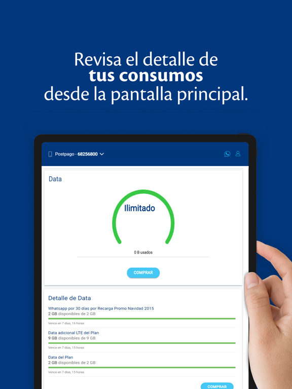 • Consultar Consumo: Revisa tu consumo de datos, minutos y SMS, cuando quieras.