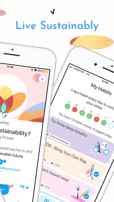 - Habits: Fun and sustainable actions you can take everyday. The App will act as a reminder and give you points for taking action.