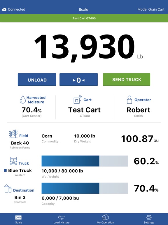 • Operator names let you know who is operating a grain cart and who made the record.