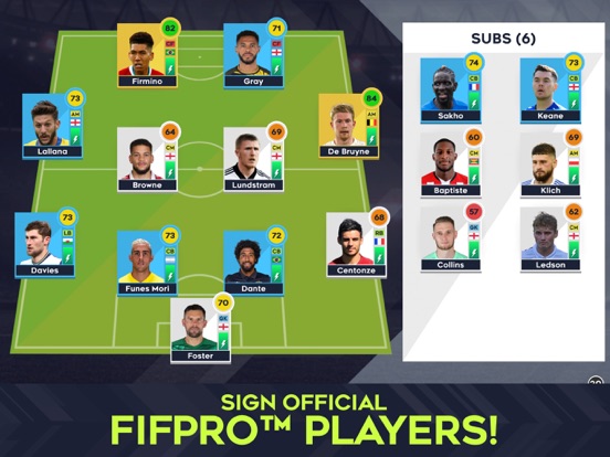 Sign top superstar players such as Kevin De Bruyne & Roberto Firmino to create your very own Dream Team! Perfect your style, develop your players and take on any team who stands in your way as you rise through the ranks. Upgrade your stadium with world-class facilities as you make your way to the Legendary Division. Have you got what it takes?