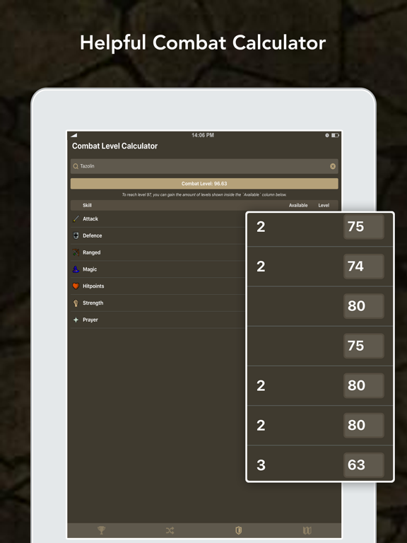 - Combat Calculator (Determine how many levels are needed to attain your next combat level)
