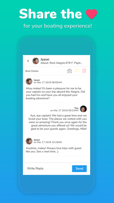 • Share your boat with Renters and earn money from it by listing it;