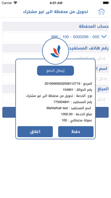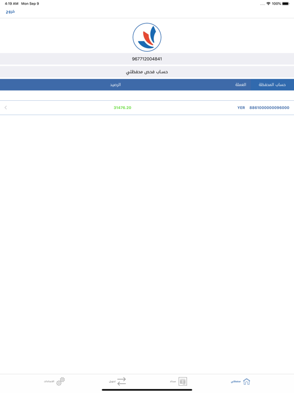 الأيقونات المتوفرة على تطبيق محفظتي: