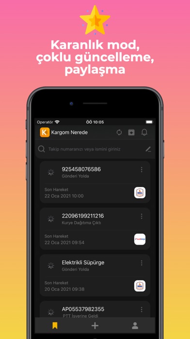 - Tek bir uygulama üzerinden birden fazla kargo şirketinin kargolarını takibini sağlayabilirsiniz.