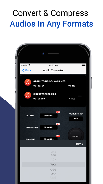 • Audio Converter: Convert and Compress your audio to almost any audio formats. Configuration options: