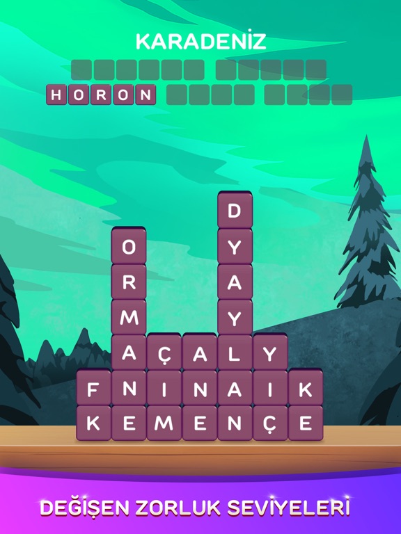 A Word Kelime Oyunu yapımcılarından, sonuna gelmeden elinizden düşüremeyeceğiniz, popüler ücretsiz kelime oyunu sizlerle. Karmaşık şekilde duran kutular arasında anlamlı kelimeyi bulup, kutular yer değiştirdikçe yeni kelimeler göreceksiniz.