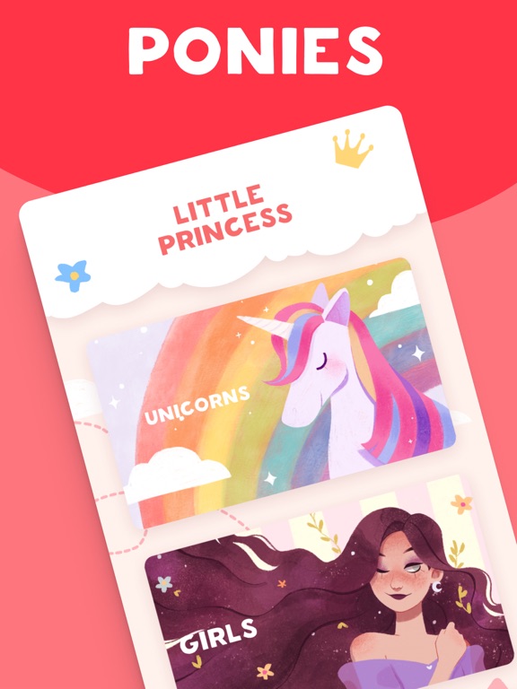 We have created lots of cute and sweet drawings of beautiful unicorns, ponies, fairies, princesses and friendly animals. Little Princess is a complete magical world with everything girls like!