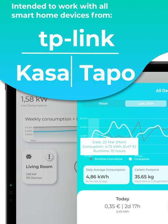 Disclaimer: This app is not affiliated, endorsed, or supported by Tp-Link in any way, Kasa and Tapo are trademarks of Tp-Link. Watt for Smart Devices is a third-party application intended to work with smart home devices from Tp-Link and by doing that offer to the Tp-link IoT Community another way to control devices and explore new features.