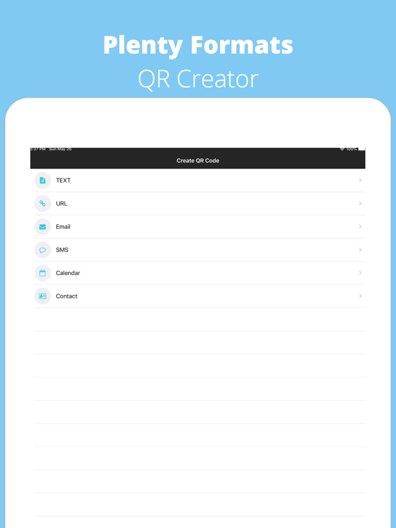 Supports: QR Code, Data Matrix, PDF-417, AZTEC, EAN-13, EAN-8, UPC-A, UPC-E, Code-39, Code-93, Code-128.