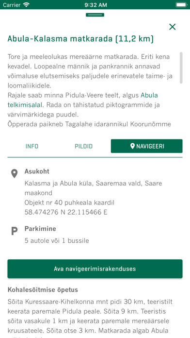 - Võimaluse positsioneerida end matkaradade ja teiste külastusobjektide suhtes