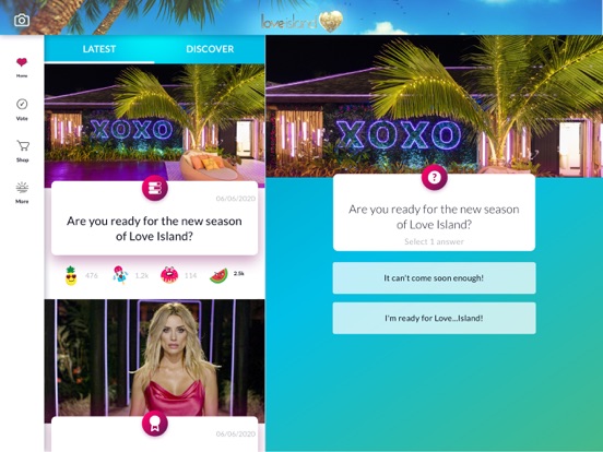 If that wasn't enough, you'll be able to test your Love Island IQ with our quizzes, take your best Island selfies using our camera filters and shop til you drop and bag some exclusive Love Island merch.