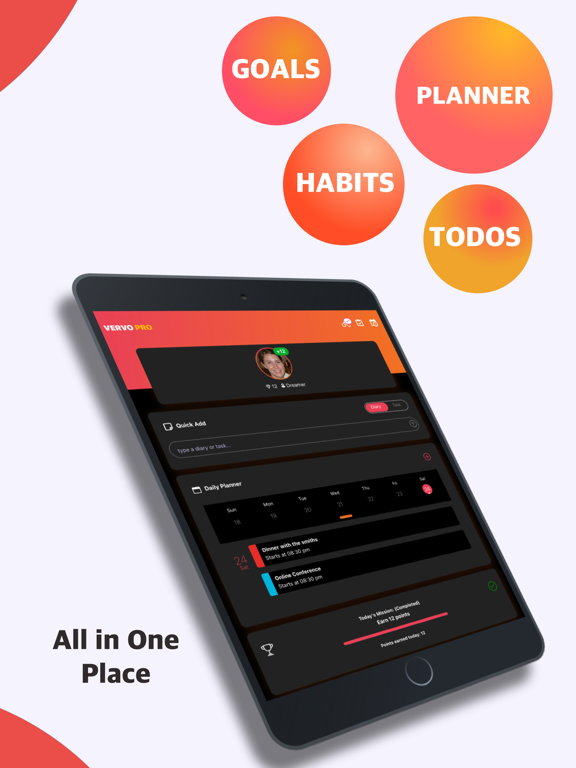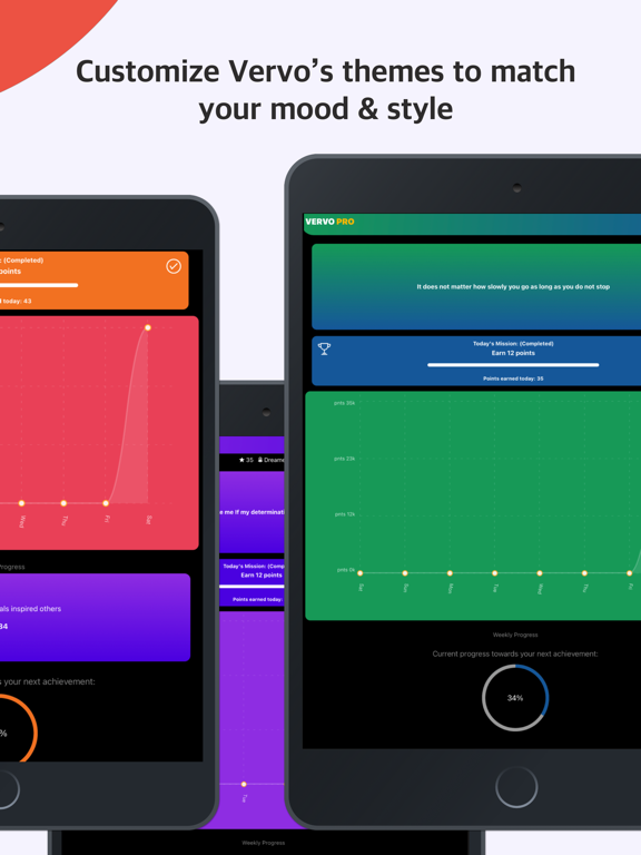 Experience a delightful array of features on this goal tracker & habit tracker app! Vervo is based on scientific evidence to help you plan your to do list, track goals, commit and achieve your life goals using rich motivation-based features which are also helpful in enabling social inspirations through family, friends, and the world.