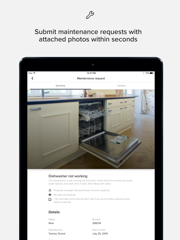- Don't stress if you have an issue that needs to be fixed! Easily submit a request right from the app and include a photo so your property manager can get it resolved as soon as possible.