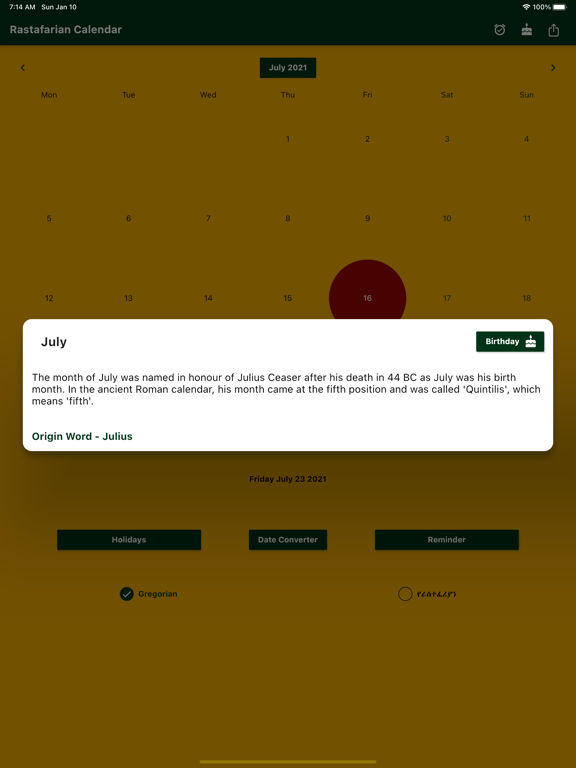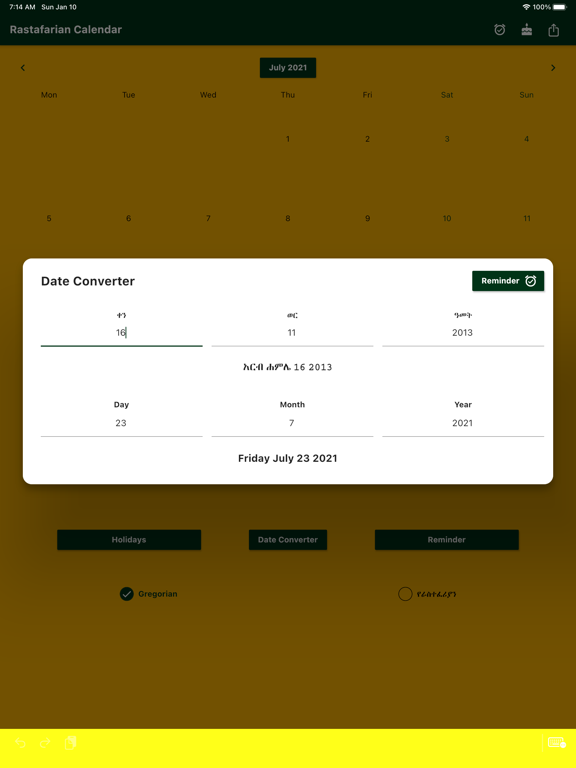 Rastafarian calendar shows Rastafarian holidays & converts between Rastafarian & Gregorian Dates!