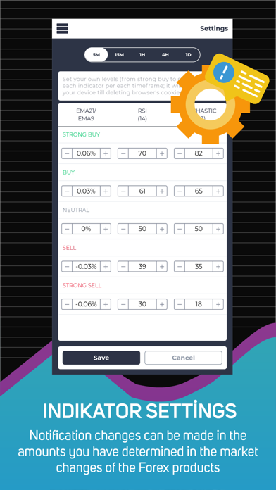 You can change the Forex trend signal frequency to 5 minutes, 15 minutes, 1 hour, 4 hours and daily, and you can receive notifications in any time period.