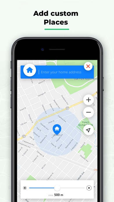 ⁃ Receive notifications when a family leaves or arrives at a place